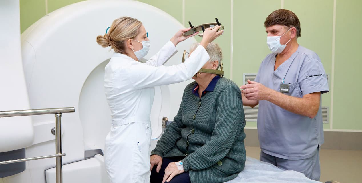 Стереотаксическая радиохирургия позволяет воздействовать на патологический очаг сфокусированными пучками ионизирующего излучения высокой мощности. Технология обеспечивает высокую точность позиционирования, что позволяет минимизировать воздействие на окружающие здоровые ткани мозга.