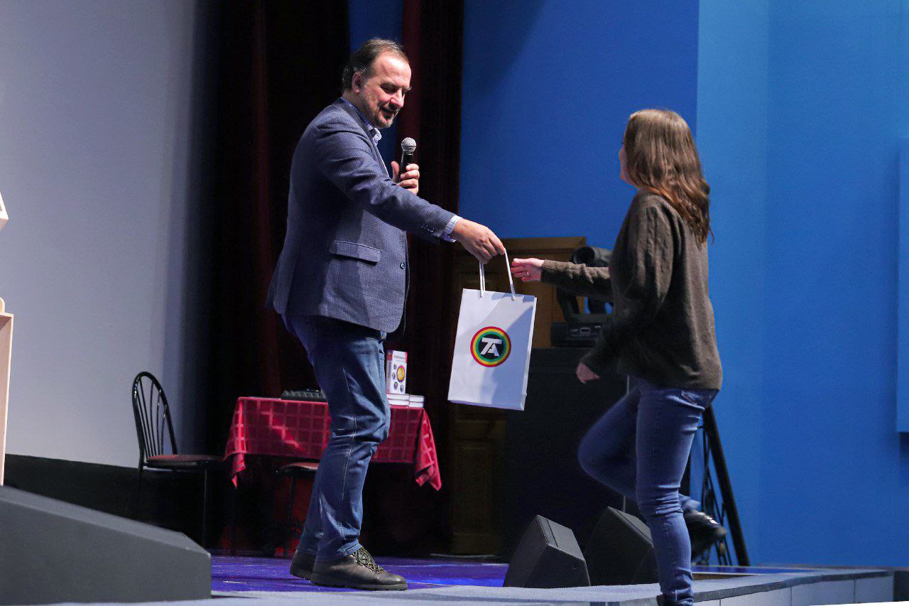 «Здесь одна из самых лучших аудиторий, это здорово, — признается Алексей Паевский. — Для нас большая честь и большая радость во второй раз в этом году побывать в Тольятти, ведь мы были здесь прошлый раз в мае. За это время изменилось очень многое. Главное, что изменилось: у нас в стране появилась работа на десять лет вперед. В стране объявлено Десятилетие науки и технологии. Очень важное и полезное дело делает «Тольяттиазот», когда постоянно, регулярно, ежегодно приучает людей к науке.