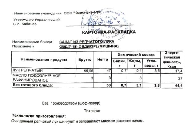 В СМИ и соцсетях появилось фото карточки-раскладки, где среди блюд, которыми кормят больных детей, был «луковый салат».
