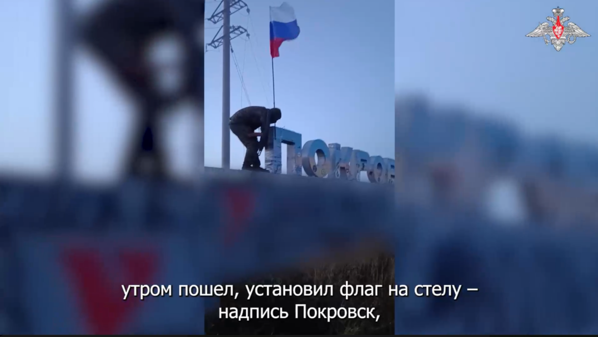 Государственный флаг России в Красноармейске установил простой стрелок 30-й бригады. «Мы с напарником по туману (потому что «птичек» много летает) утром пошли и установили флаг на стелле с надписью Покровск, потому что понятно, что это наше уже всё. Надежно зафиксировали флаг. Их флаги поснимали, которые там были», — рассказывает воин.