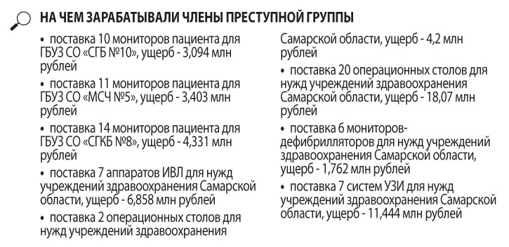 Руководство минздрава и «Самарафармации» предоставили группе Изюмского широкие конкурентные преимущества на профильном рынке, в результате чего он мог «гарантированно заключать контракты на поставку медицинского оборудования минздраву Самарской области, а также самостоятельно формировать технические требования к медицинскому оборудованию и цену государственных контрактов по поставке данного оборудования в нарушение конкурентных процедур».