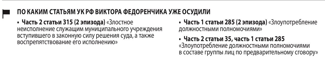 Как считает следствие, эти действия замглавы ДУИ повлекли «существенное нарушение прав и законных интересов» жильцов так и не отремонтированных квартир — семьи Кравченко и Лизуновой Г.С. Также были нарушены значимые интересы общества в плане создания правового, социального государства и интересы самого государства, «заключающиеся в сохранении конституционного строя, суверенитета, территориальной целостности России, политической, экономической и социальной стабильности». Эти нарушения выразились в подрыве авторитета органов государственной власти, в потере Федоренчиком имиджа государственного (муниципального) служащего, в подрыве авторитета законов Российской Федерации. Однако при всей строгости формулировок санкция вмененной экс-замглавы ДУИ статьи невелика — максимум 4 года лишения свободы.