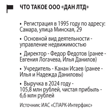 Компания «ДАН ЛТД», которой руководит Канан Исаев, создана еще в 90-е и раньше принадлежала Надежде и Илье Даниловым. В 2024 году общество показало выручку 105,8 млн рублей, чистую прибыль — 6,6 млн рублей.