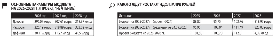 В проекте будущего года налог на прибыль теперь закладывается в меньшем объеме, и отнюдь не 100 млрд рублей, выше которых цифры планировались в предыдущих версиях бюджета, а понижены: 89,98 млрд в следующем году, 91,78 млрд — в 2027-м, 94,26 млрд — в 2028-м. Сборы налога на доходы физлиц будут выше. Уже в следующем году они должны превысить отметку в 100 млрд рублей, а через два года увеличиться до 112,3 млрд рублей. Так что отрыв от налога на прибыль с каждым годом будет увеличиваться.