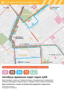 Изменения коснутся маршрутов № 30, 35, 56, 70 и 213. Объезды будут организованы по соседним улицам, включая Авроры, Антонова-Овсеенко, XXII Партсъезда, Московское шоссе и Стара-Загора. Точные схемы движения для каждого направления опубликованы на сайте мэрии и в официальных пабликах городской администрации.