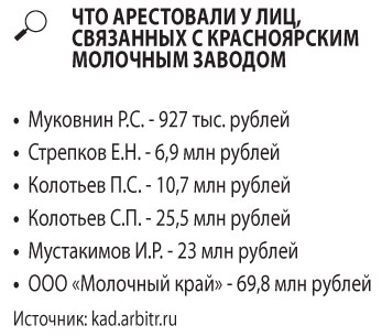 Налоговики уже инициировали взыскание с ООО «Молочный край» и шести физических лиц порядка 115 млн рублей, которые им задолжал прежний оператор завода ООО «Красноярское молоко». Параллельно фискалам удалось арестовать имущественный комплекс молокозавода и личное имущество его бенефициаров, в том числе объекты недвижимости в различных регионах России.