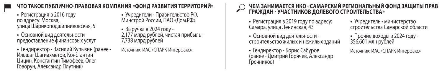 Пока достраивался ЖК и шли суды над менеджерами-расхитителями, вопросами взыскания с них понесенного ущерба озаботились НКО «Самарский региональный фонд защиты прав граждан — участников долевого строительства», учрежденное минстроем Самарской области, и публично-правовая компания «Фонд развития территорий» (учредители — Правительство РФ, Минстрой России, ПАО «Дом.РФ»).