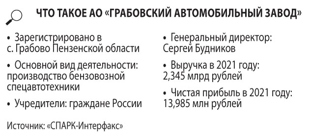 АО «Грабовский автомобильный завод» («Завод ГРАЗ») — один из крупнейших в России заводов по производству бензовозной спецавтотехники. В номенклатуру выпускаемой продукции входят топливозаправщики, автоцистерны, стальные и алюминиевые полуприцепы-цистерны (ППЦ), прицепы-цистерны, полуприцепы для темных нефтепродуктов. Производственная площадка компании расположена в Пензенской области. По результатам 2021 года ГРАЗ выручил 2,345 млрд рублей, получив чистую прибыль в размере 13,985 млн рублей. По информации «СО», в 2022 году обороты предприятия находились у отметки 3 млрд рублей. Пост генерального директора предприятия занимает Сергей Будников.