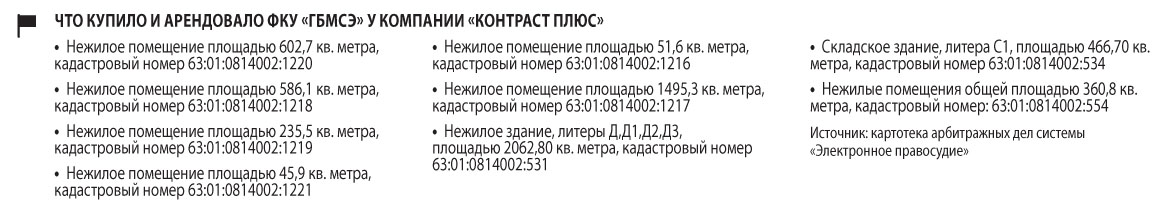 Согласно обращению СУ СКР по Самарской области, несмотря на то, что в соответствии с условиями государственного контракта на аренду нежилого помещения его техническое содержание возлагалось на арендодателя, ФКУ «ГБМСЭ» заключало государственные контракты с обществом «Контраст Плюс» на возмещение расходов по коммунальным услугам и услугам по хозяйственному обслуживанию и техническому содержанию арендуемых помещений. Оплата по государственным контрактам производилась учреждением за счет средств федерального бюджета. Как считает СУ СКР — необоснованно, «в отсутствие установленных законом, иными правовыми актами или сделкой оснований», что привело к неправомерному расходованию средств федерального бюджета. Эти же неправомерные перечисления легли в основу одного из эпизодов уголовного дела руководителей ФКУ «ГБМСЭ».