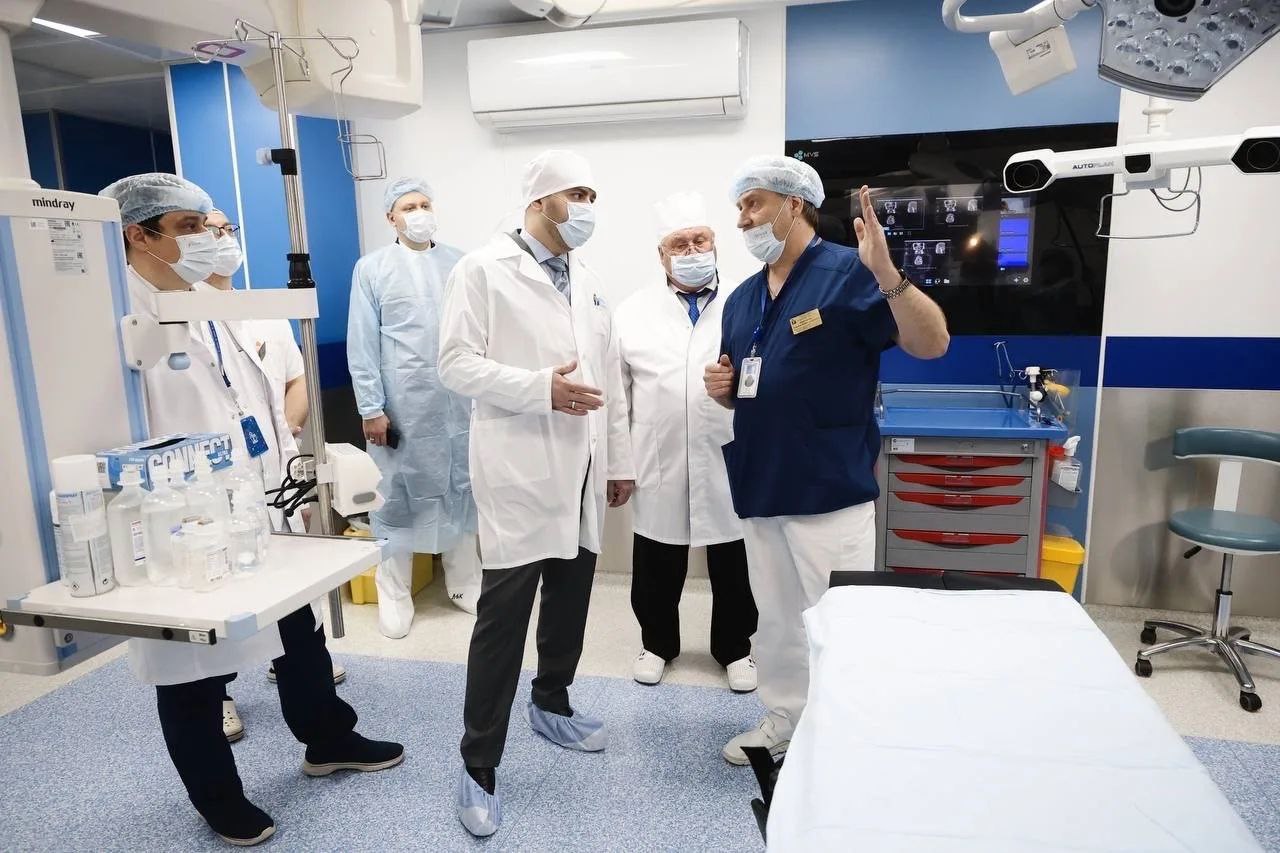 Вячеслав Федорищев ознакомился с ключевыми высокотехнологичными направлениями работы клиник, где, по его словам, сформирована уникальная связка образования, науки и инноваций. Ректор СамГМУ Александр Колсанов и главный врач клиник Николай Измалков продемонстрировали гостю работу современного ЧКВ-центра, рентгенхирургической операционной, а также комплекса чистых помещений для трансплантации костного мозга.
