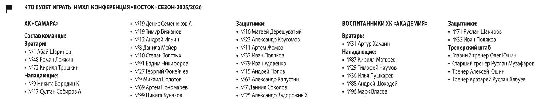 9 октября в поселке Усть-Кинельский состоялась презентация команды ХК «Самара», которая в сезоне-2025/2026 будет представлять регион в Восточной конференции Национальной молодежной хоккейной лиги.