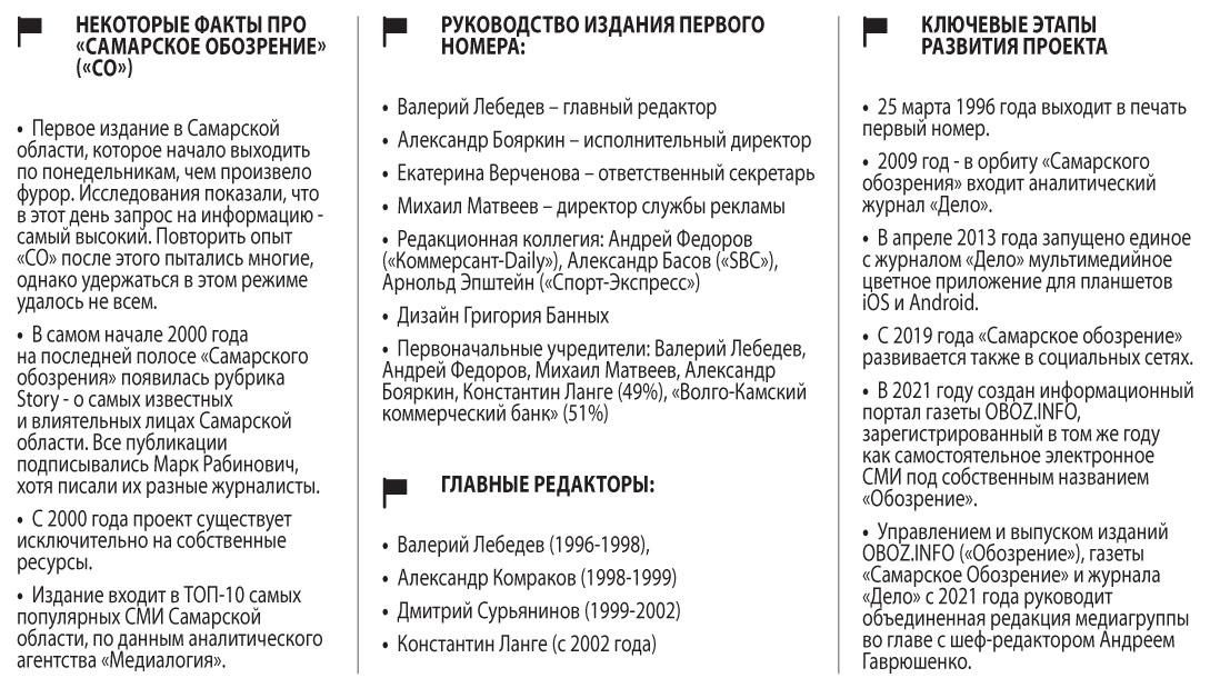 Весной 1996 года в свет вышел первый номер газеты «Самарское обозрение». Тогда мало кто был в состоянии заглянуть в сегодняшний день и даже предположить, какие проблемы станут прежде всего волновать самарцев тридцать лет спустя.