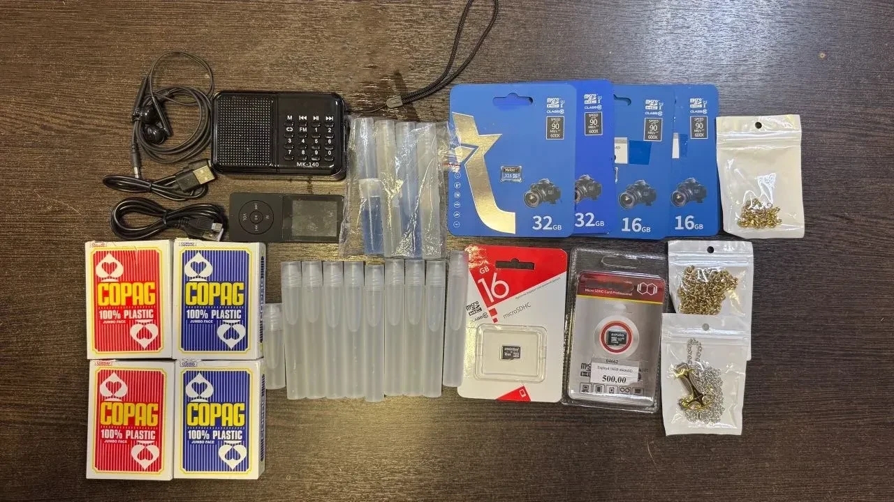 В кабине грузовика за пассажирским сиденьем нашли схрон. Там находились 4 колоды игральных карт для покера, цепочка с крестом из металла белого цвета, 2 цепочки из металла желтого цвета, 14 флаконов туалетной воды, радиоприемник с аккумуляторной батареей, MP3-плеер, проводная гарнитура, 2 USB-кабеля, а также 6 флеш-карт формата MicroSD.