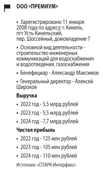ООО «Премиум» работает с 2008 года. Собственник — Александр Максимов, директор — Алексей Широков. Реальным бенефициаром компании считается кинельский коммерсант Олег Матвеев — один из учредителей благотворительного фонда «Премиум» (см. допматериал «Не только благотворитель»).