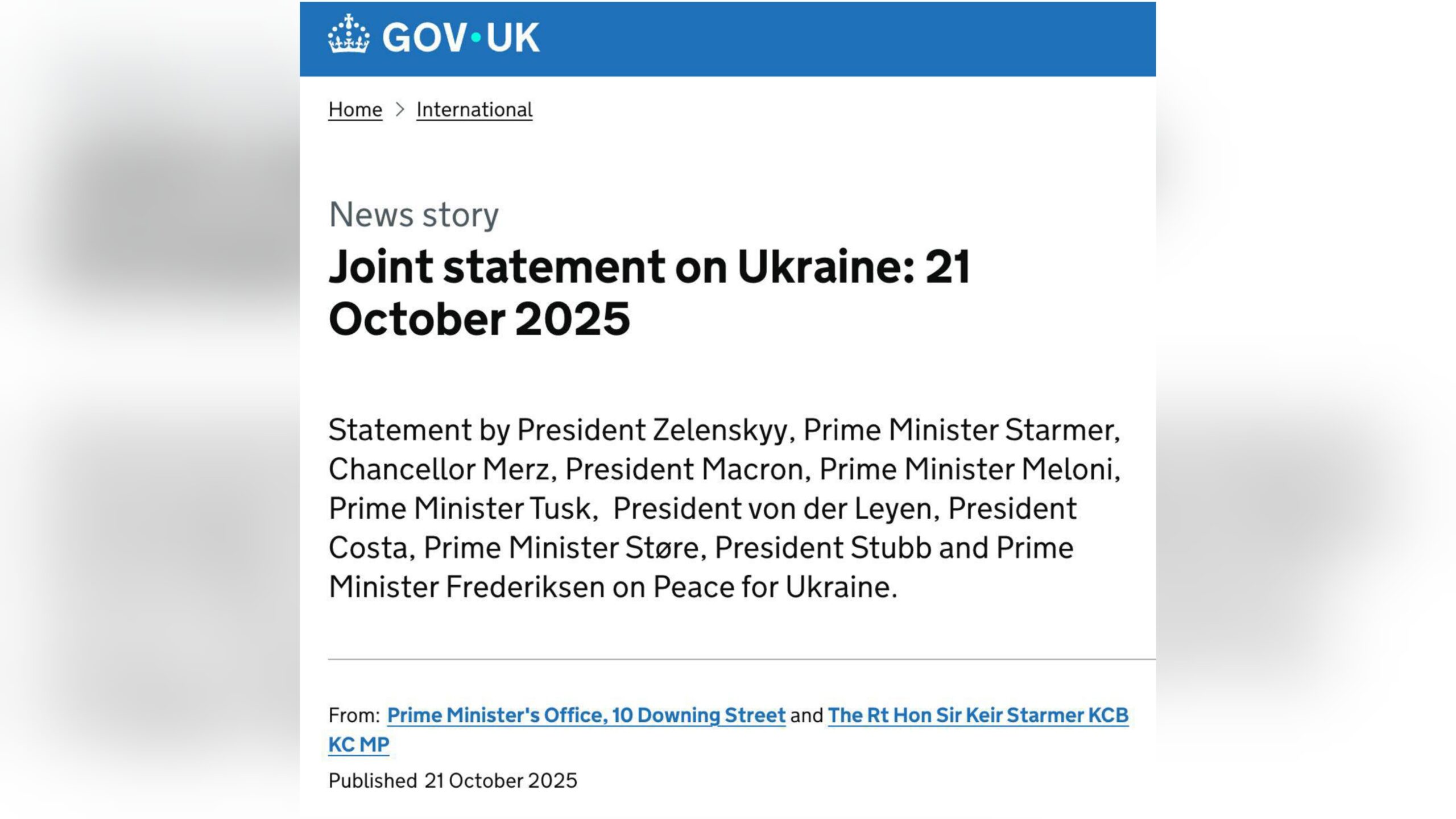Заявление опубликовано офисом британского премьер-министра сегодня, 21 октября.