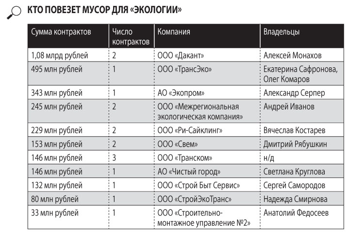 По итогам аукционов число контрагентов регоператора сократилось. Если на момент объявления торгов таковых было 18, то пока удалось выяснить названия лишь 11 компаний, с которыми планируется в ближайшее время подписать контракты. Среди них есть как те, кто работал еще с предыдущим регоператором, «ЭкоСтройРесурсом», так и относительно новые подрядчики «Экологии».
