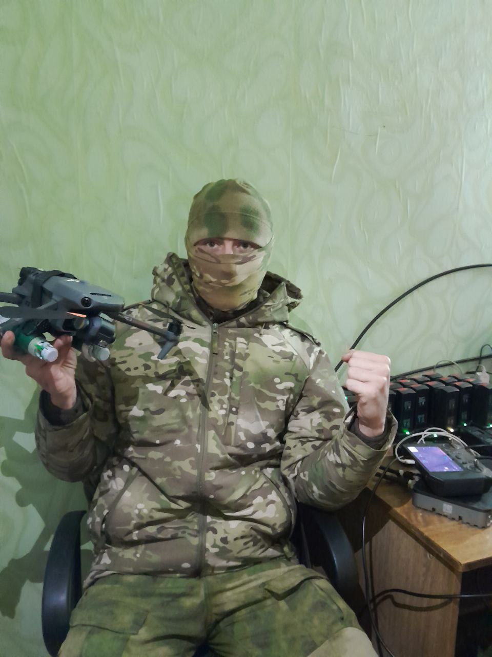 Во время сборов в военном училище будущих героев земляки старались снабдить всем необходимым. Волонтёры и неравнодушные граждане привозили гуманитарную помощь: вещи, продукты, печки. Дмитрий вместе с товарищем попросили только одно: квадрокоптер. Так у него появился первый беспилотник модели Mavic.