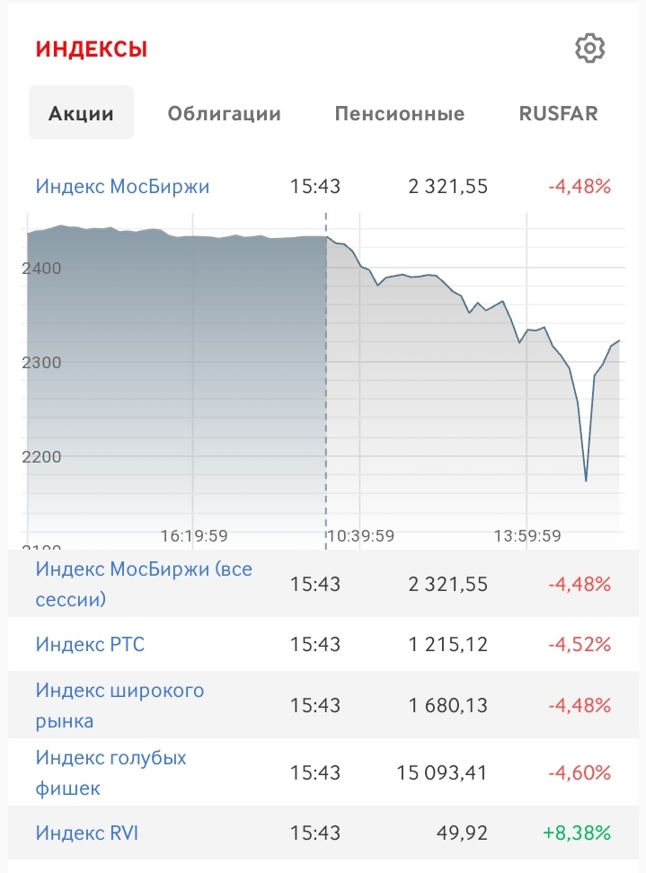 Резкое падение произошло после того, как власти объявили о назначении дат референдумов ДНР, ЛНР и Херсонской области о вхождении в состав РФ.