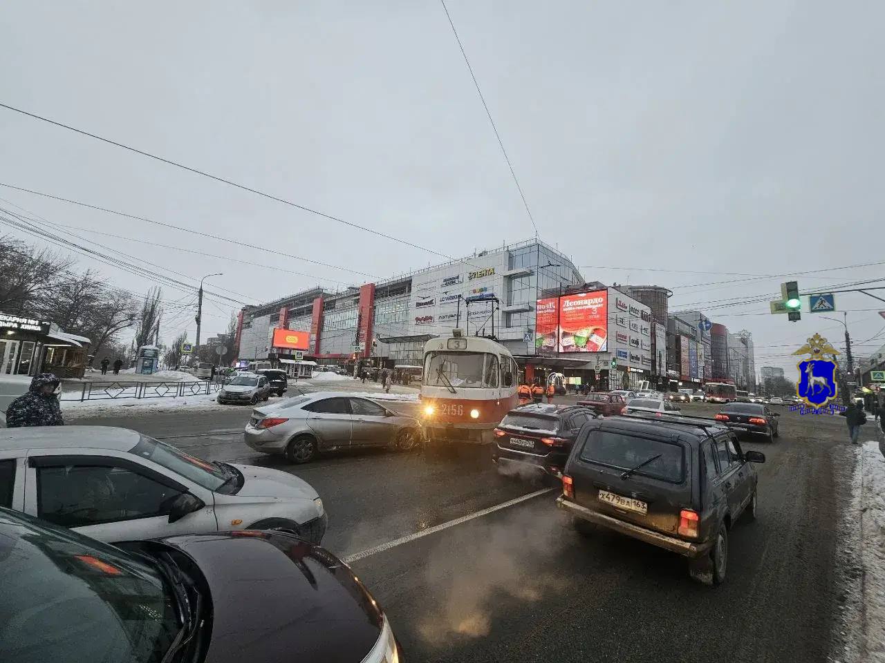 Сегодня, 13 февраля, автомобиль Hyundai столкнулся с трамваем в Железнодорожном районе областной столицы. Удар пришёлся на рельсовую зону, что мгновенно создало препятствие для остального транспорта.