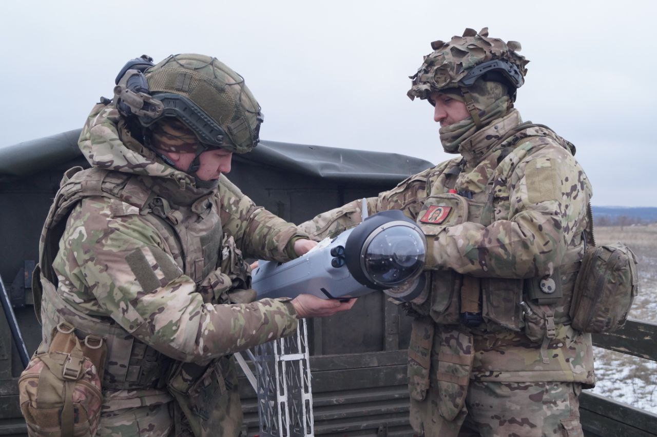 Спешившись с техники, военнослужащие приступают к предполетной подготовке. Водитель помогает товарищам раскрыть и сбросить тент с грузового автомобиля, открывая замаскированную пневматическую катапульту. Номер расчета подсоединяет газовый баллон к установке. Не теряя времени, гвардии ефрейтор Артем Егоров достает из защитного ящика беспилотник и начинает его сборку. К фюзеляжу он подсоединяет Х-образные крылья и устанавливает аккумуляторную батарею.