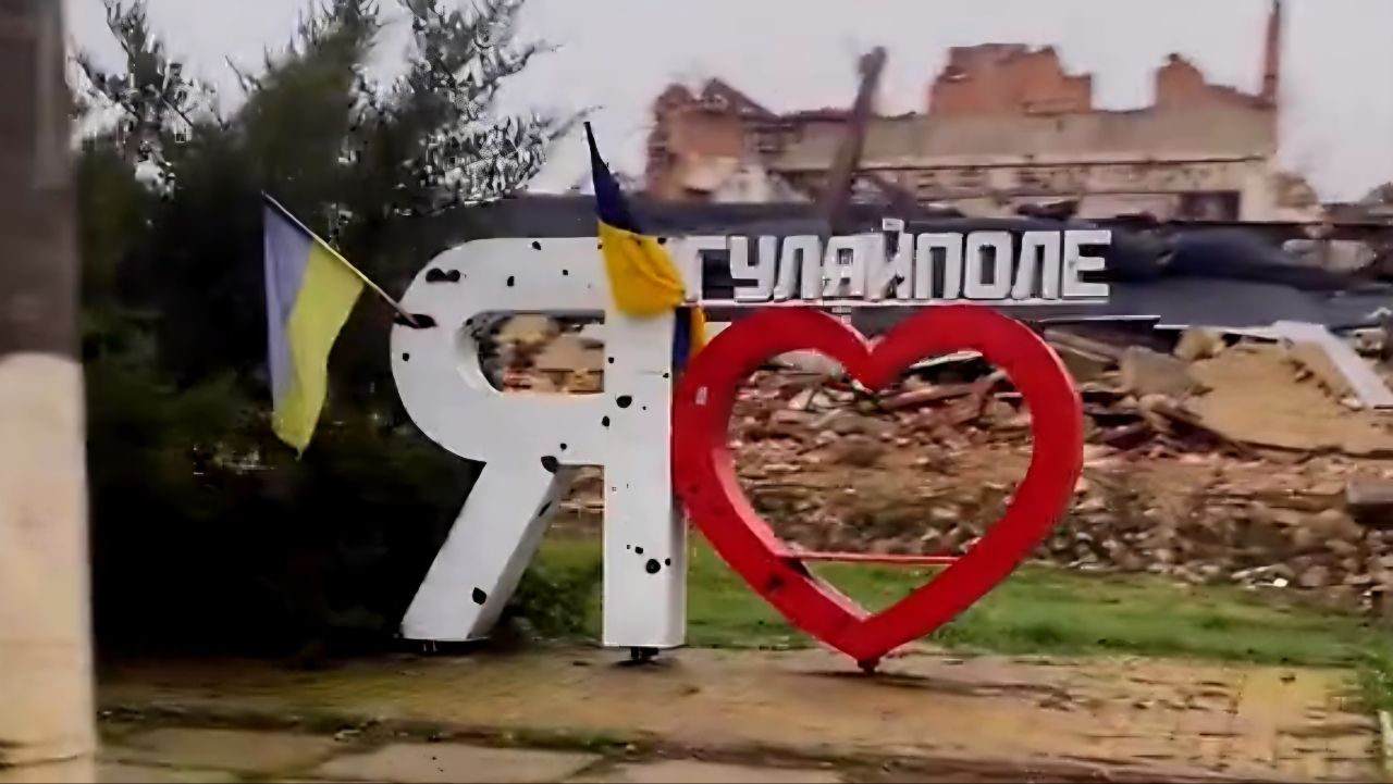 Видео, на котором российская военная техника движется среди разрушенных домов, опубликовано и в Телеграм-канале эксперта Центра военно-политической журналистики Бориса Рожина. На одном из кадром заметна традиционная стелла с сердечком «Я люблю Гуляйполе».