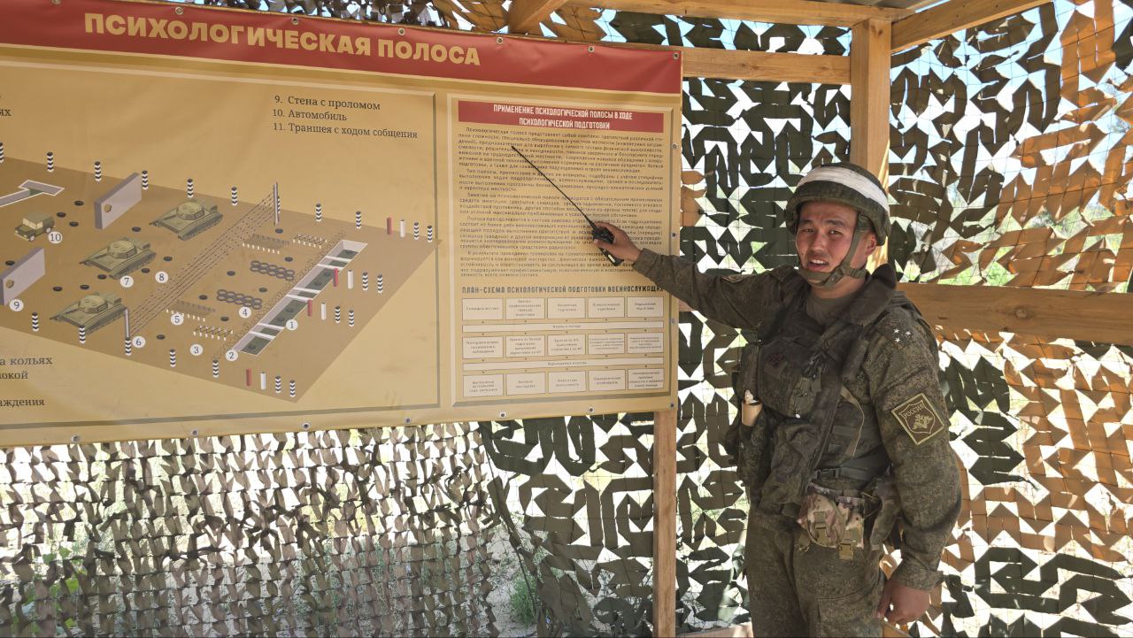 В бою стоит учитывать любые факторы и сохранять хладнокровие. На учебной точке с громкоговорителя включается запись со звуками работы бронированной техники, требованием сдаться на украинском языке, взрывов. Но иногда на полигоне можно услышать детский плачь и просьбу о помощи. И звучат они не случайно.