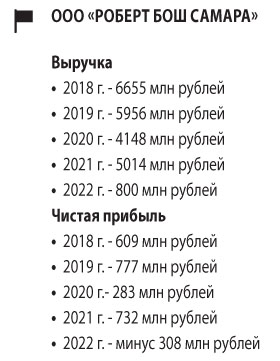 Обвал производства не помешал владельцам организовать масштабный вывод денег из своей самарской компании. Судя по отчетности «Роберт Бош Самара», в 2022 году она в виде дивидендов перевела 732,5 млн рублей — эквивалент полученной чистой прибыли за 2021 год. Выплата дивидендов традиционно производилась РБС после подведения итогов года, то есть после первого квартала 2022 года. Между тем в апреле 2022-го уже было понятно, что немецкий завод останавливается и работать дальше не планирует.