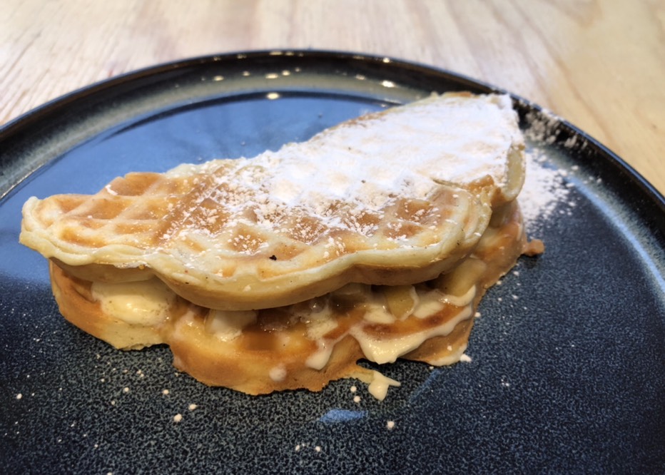 Для примера, в размере mini: сладкая вафля «Штрудель» с начинкой из запечённого яблока с корицей, сыром «Маскарпоне» и соусом «Карамель», будет стоить 295 рублей.