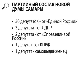 В сентябре этого года дума Самары впервые после длительного перерыва была избрана путем прямого всенародного голосования в составе 37 депутатов. Из них 17 ранее уже являлись членами городского собрания, а 20 впервые получили мандаты. 30 депутатов были выдвинуты партией «Единая Россия» и сразу после избрания приняли решение об образовании своего объединения в новой думе.