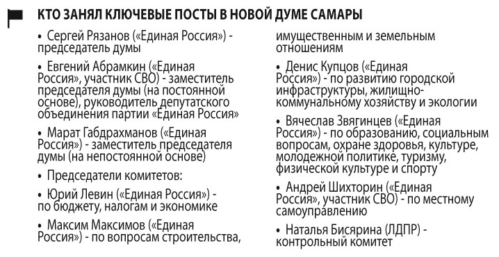 2 октября дума Самары также определилась с вице-спикерами и председателями комитетов. Их должности распределили поровну между опытными депутатами и теми, кто впервые получил мандат.