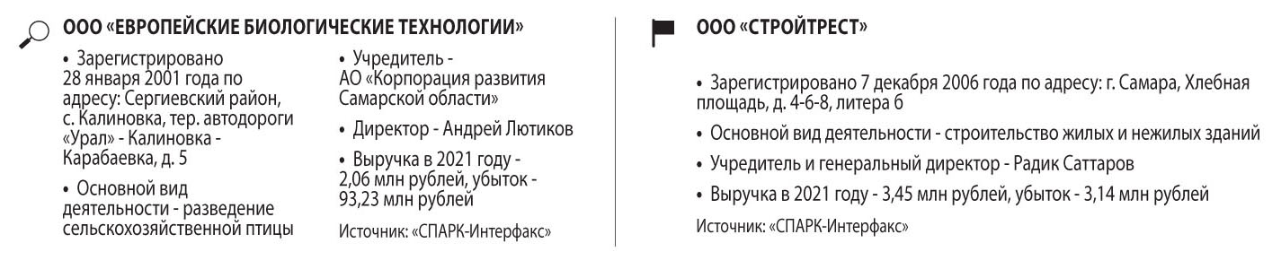 Региональные власти в лице подконтрольного Корпорации развития Самарской области ООО «Евробиотех» пытаются вернуть хотя бы около 700 млн рублей, вложенных в строительство многострадальной Сергиевской птицефабрики.