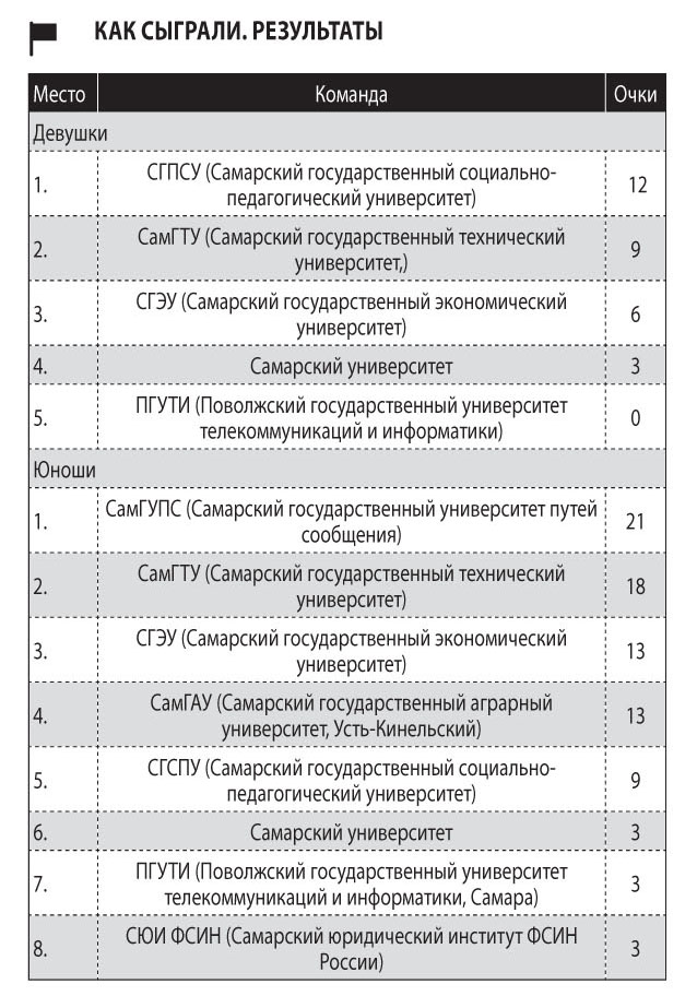 Третьи места и у юношей, и у девушек заняли команды СГЭУ (Самарского государственного экономического университета. — Прим. ред.).