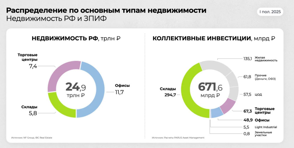 Объем рынка фондов недвижимости в первом полугодии 2025 года составил 671,6 млрд руб., отмечают в PARUS Asset Management.