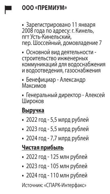 ООО «Премиум» работает с 2008 года. Собственник — Александр Максимов, директор — Алексей Широков. Компания позиционирует себя как крупного строительного подрядчика в нефтегазовой отрасли. На официальном сайте утверждается, что компания осуществляла работы на магистральных трубопроводах «Куйбышев — Лисичанск» и «Куйбышев — Тихорецк», нефтеналивном терминале «Приморск», а также крупных месторождениях в Ямало-Ненецком округе (Новопортовское, Бованенковское и Западно-Таркосалинское). Среди партнеров называются предприятия нефтепроводной компании «Транснефть» и «Газпром Нефти», в материалах суда — крупное оренбургское ООО «Нефтяная компания «Новый Поток».