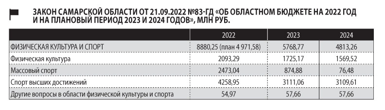 В непростой экономической ситуации объем финансирования спортивной отрасли в регионе может и вовсе сократиться. По крайней мере в областном бюджете на плановый период 2023 и 2024 годов закладывается снижение объемов до 5,768 млрд и 4,813 млрд соответственно. Эти цифры предварительные, по практике прошлых лет благодаря дополнительным доходам бюджета увеличиваются и его ассигнования.