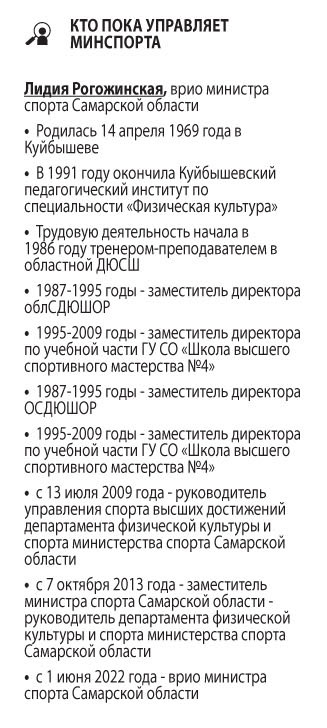 Кресло министра спорта Самарской области освободилось 1 июня 2022 года, когда был отправлен в отставку Сергей Кобылянский. Своей должности Кобылянский лишился в том числе из-за нерешенных проблем в самарском хоккейном клубе ЦСК ВВС. Финансовые неурядицы, преследовавшие самарских хоккеистов, оказались настолько слабым местом, что довели до увольнения главу спортивного ведомства спустя год и два месяца после назначения. Предшественник Кобылянского Дмитрий Шляхтин уволился по собственному желанию после восьми лет на посту руководителя ведомства. После его ухода вакансия министра спорта была свободна больше трех месяцев. В этот раз пауза с назначением руководителя затянулась уже на пять месяцев. Сейчас обязанности руководителя ведомства исполняет пересидевшая в должности зама двух министров Лидия Рогожинская.