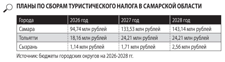 По данным министерства финансов Самарской области, в 2026 году поступления турналога в местные бюджеты планируются на общую сумму около 169 млн рублей. В Самаре в первый же год действия нового налога рассчитывают собрать 94,7 млн рублей, а в следующие два — увеличить сборы сразу более чем на 40%, при том что ставка вырастет в два раза — с 1 до 2% от стоимости проживания. В Тольятти за три года рассчитывают собрать только 66,6 млн рублей. В Сызрани — 5,4 млн. В Новокуйбышевске «СО» сообщили, что планируют получить в этом году с нового налога 3,4 млн рублей. В то же время в Отрадном и Похвистневе турналог позволит пополнить местные бюджеты всего лишь на 500 тысяч рублей.