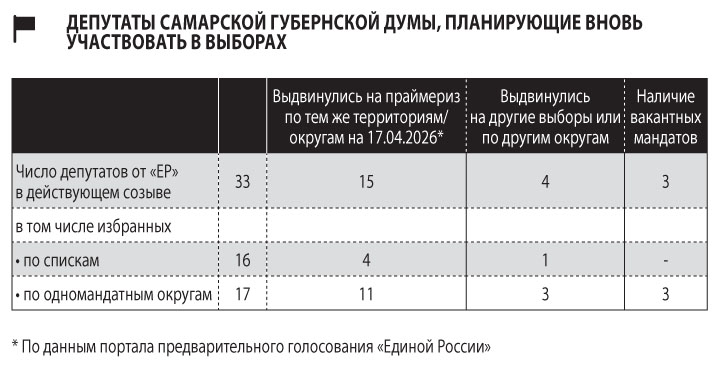 В новой кампании перед «Единой Россией» стоит задача получить порядка 36-38 мест в Самарской губернской думе, при том что сейчас их — 33, в том числе 16 списочников и 17 одномандатников.