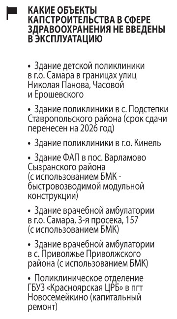 В их числе — новая детская поликлиника на улице Николая Панова в Самаре мощностью до 500 посещений в смену. Как ранее писало «СО», объект должны были ввести в эксплуатацию до декабря 2025 года, но уложиться в заявленные сроки не удалось, поскольку пришлось корректировать проектно-сметную и рабочую документацию, а подрядчик строительства — СК «Олимп» — собрал целый букет претензий со стороны областной госинспекции строительного надзора. Еще один пример — новая поликлиника в Кинеле, рассчитанная на 700 посещений в смену. Ее тоже должны были запустить в конце 2025 года, но в процессе строительных работ выяснилось, что уровень грунтовых вод оказался выше проектных показателей. Это потребовало серьезной корректировки проектно-сметной документации и привело к удорожанию стоимости работ. Дополнительные средства выделили из областного бюджета, но срок сдачи объекта пришлось перенести на лето 2026-го.