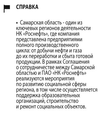 Это стало возможным благодаря участию в региональной программе по строительству, реконструкции и капитальному ремонту образовательных организаций и их инфраструктуры на территории Самарской области при финансовой поддержке АО «Самаранефтегаз», входящего в НК «Роснефть».