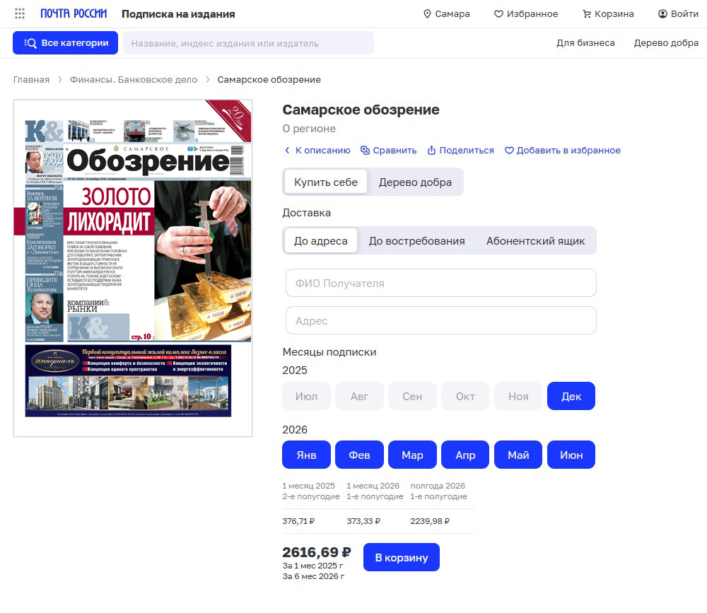 Можно выбрать любой период времени — от месяца до полугода. Для этого достаточно заполнить соответствующую форму с данными подписчика, адресом доставки и оплатить онлайн.