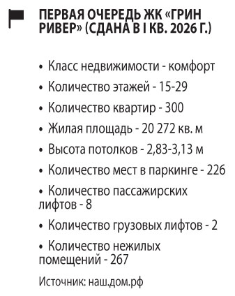 В первом квартале 2026 года точно в соответствии с графиком была сдана первая очередь жилого комплекса «Грин Ривер», едва ли не самого амбициозного проекта девелоперской компании «Древо».