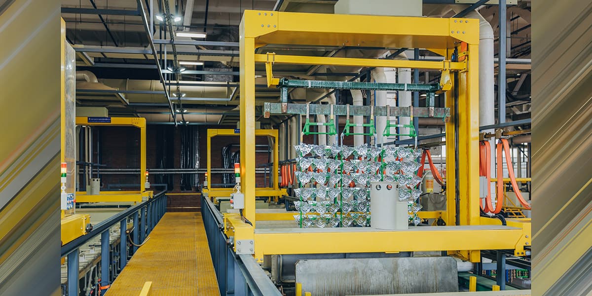 Производственные линии полностью автоматизированы. Ручной труд применяется исключительно при навеске и снятии готовых изделий. Автооператор контролирует все технологические этапы — от промывки до пассивации и сушки.