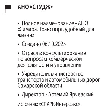 К моменту подписания документа в Самарской области успело несколько раз смениться руководство минтранса, и в день подготовки к печати данного номера «СО» новый министр в должности утвержден не был. Зато стало известно, кто возглавит АНО, которая может взять на себя значительную часть функционала по решению поставленных задач. По данным системы «СПАРК-Интерфакс», запись в ЕГРЮЛ о создании АНО «Самара. Транспорт, удобный для жизни» была внесена 6 октября. При этом основной вид деятельности указан как «консультирование по вопросам коммерческой деятельности и управления». В качестве вспомогательных — самые разные: от разработки программного обеспечения и научных исследований до инженерных изысканий, управления проектами строительства и др.