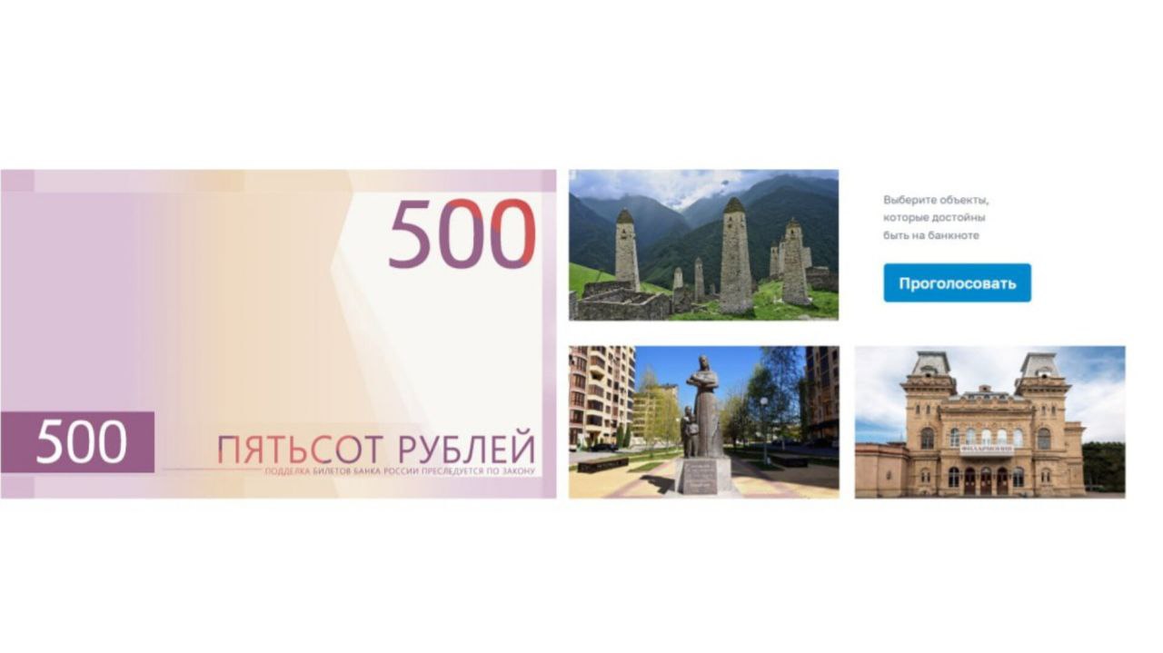Участники голосования могут выбрать по два символа – виды Пятигорска для лицевой стороны 500-рублевой купюры и достопримечательности других регионов округа для оборотной.