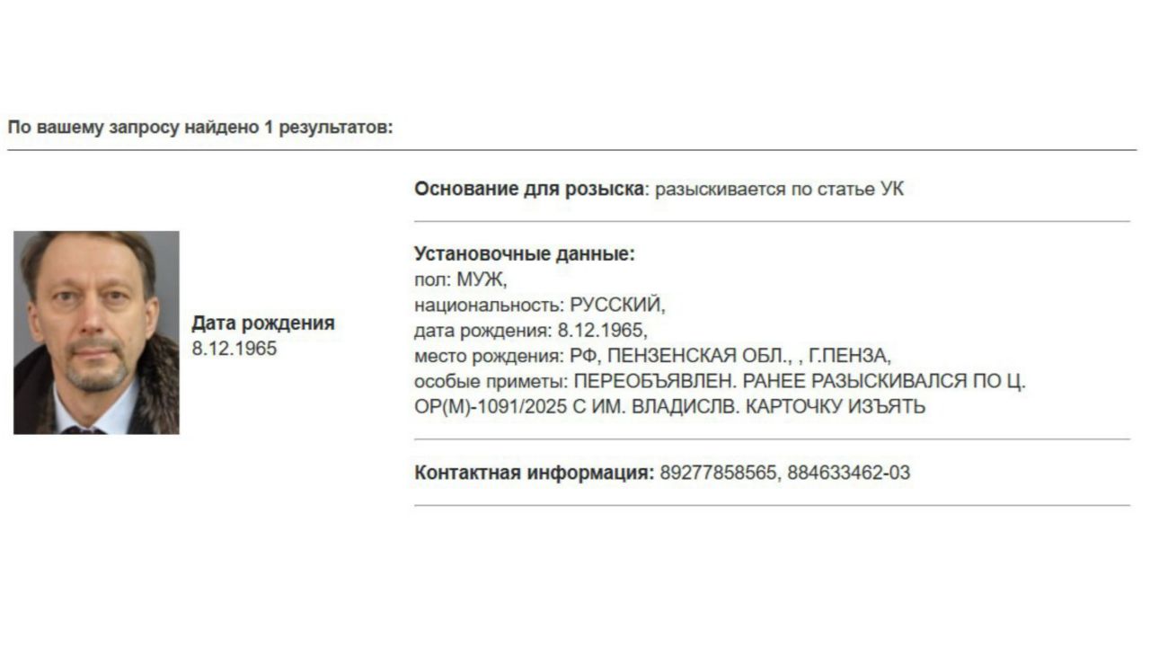В карточке на сайте ведомства указано, что 60-летний Владислав Романов разыскивается по статье Уголовного кодекса РФ, но по какой именно — пока не раскрывается.