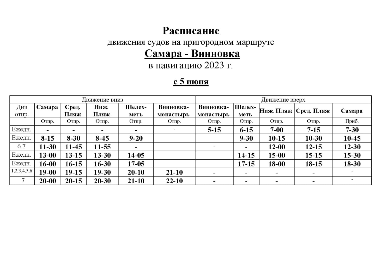 Самарское речное пассажирское предприятие трансформирует график ежедневных перевозок из Самары в Винновку.