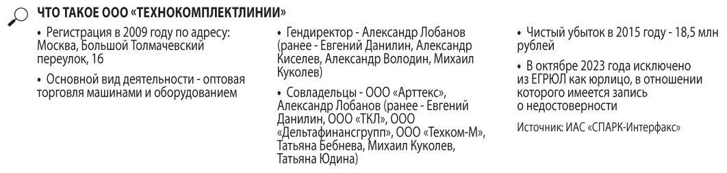 ООО «Технокомплектлинии» в октябре 2023 года исключили из ЕГРЮЛ как юрлицо, в отношении которого имеется запись о недостоверности. В связи с этим два бывших гендиректора компании, подельники Наумова Александр Володин и Михаил Куколев, тоже сменили место работы. Куколев успел поруководить московскими ООО «Саброса» (строительство) и ООО «СтройПроектАвангард» (оптовая торговля топливом).