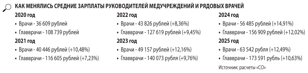 Собственно, если смотреть по отдельным медицинским организациям, то самые высокие средние зарплаты руководящих лиц показывают в основном те лечебные учреждения, что обычно позиционируются в качестве топовых. Так, у Сергея Пушкина, главврача крупнейшего медучреждения региона — областной больницы имени Середавина, вышло 267 493 рубля, тогда как в 2024 году его ежемесячный заработок составлял 249 621 рубль (рост на 7,16%). В список самых высокооплачиваемых руководителей по итогам 2025 года вошли также главврач одной из крупнейших больниц Самары — №1 имени Пирогова — Анатолий Титов с зарплатой в 258 057 рублей в месяц, руководитель областной детской больницы имени Ивановой Ольга Галахова (254 402 рубля) и главврач Самарской областной стоматологической поликлиники Юлия Шухорова (245 323 рубля). Не отстают от них главврач Самарской стоматологической поликлиники №3 Александр Нестеров (243 262 рубля) и руководитель Тольяттинской городской клинической больницы №5 Александр Вавилов (242 799 рублей).