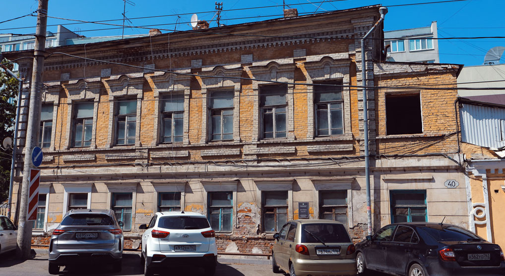 ООО «Волжанин» из Нижнего Новгорода победило в аукционе сразу по двум объектам. Первый — ОКН регионального значения «Дом на усадьбе мещанина Лесина» по адресу: ул. Ленинская, 104-106. Это двухэтажный кирпичный дом с подвалом, в котором до революции располагалась переплетная мастерская. Общая площадь здания — 454,4 кв. м, земельный участок — 330 кв. м. Организаторы аукциона оценили стоимость земельного участка в 2,65 млн, а здания в 4,4 млн рублей.
